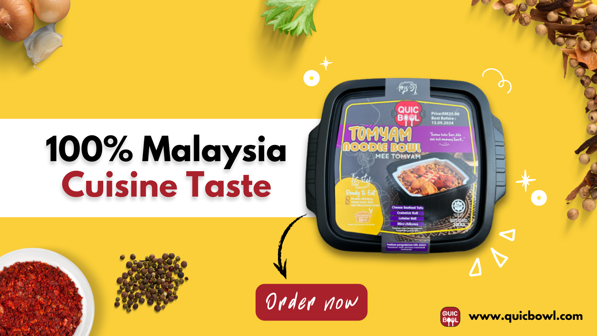 Quicbowl's ready-to-eat Malaysian dishes use self-heating bowls to serve meals in just 15 minutes. Enjoy quick, tasty, and authentic flavors anytime, anywhere with Quicbowl.